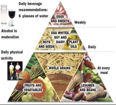 Vegetables; fruit; whole grains; limited amounts of animal protein & fat; hydrate